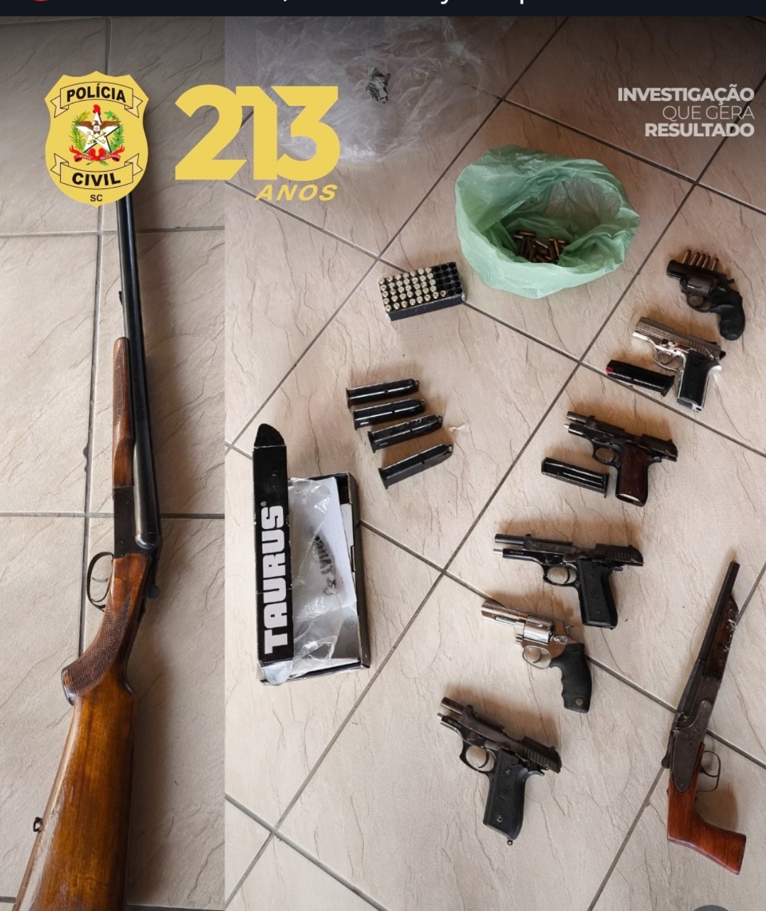 Um homem de 66 anos foi preso durante uma operação da Polícia Civil de Santa Catarina, que resultou ainda na apreensão de armas e munições.
