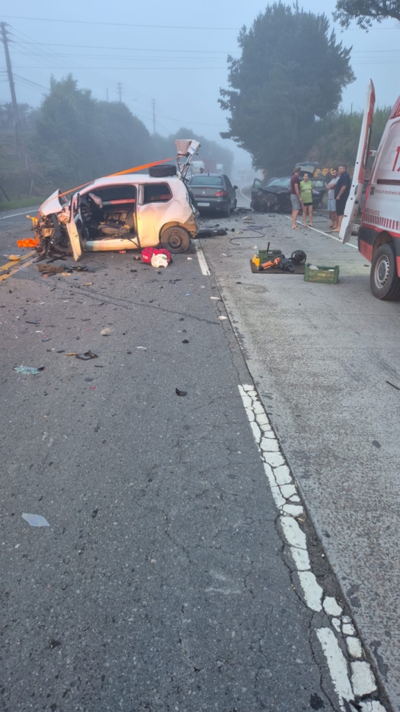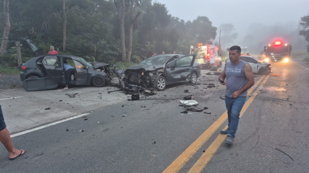 Acidente envolvendo quatro veículos mobiliza equipes de resgate na SC-418 em São Bento do Sul