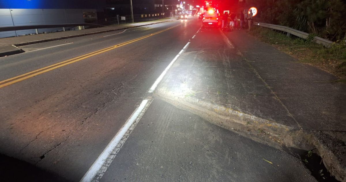 No local do acidente, foram identificados vestígios de sangue e marcas de fricção no pavimento, indicando a dinâmica da queda.