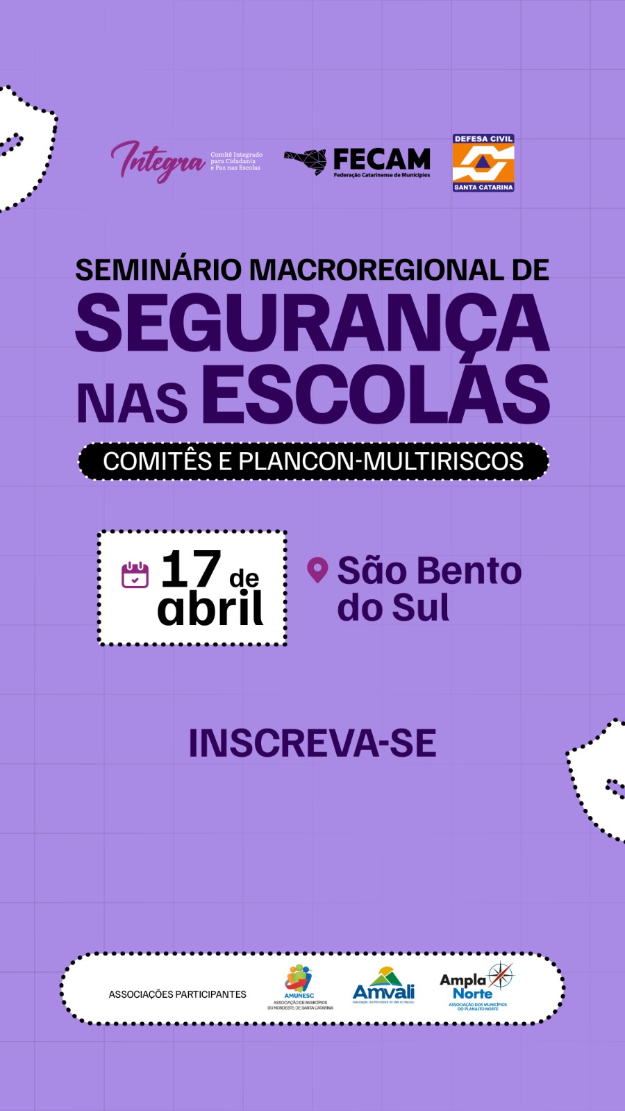 Nesta sexta-feira (17), acontece o Seminário Macrorregional de Segurança nas Escolas, em São Bento do Sul.